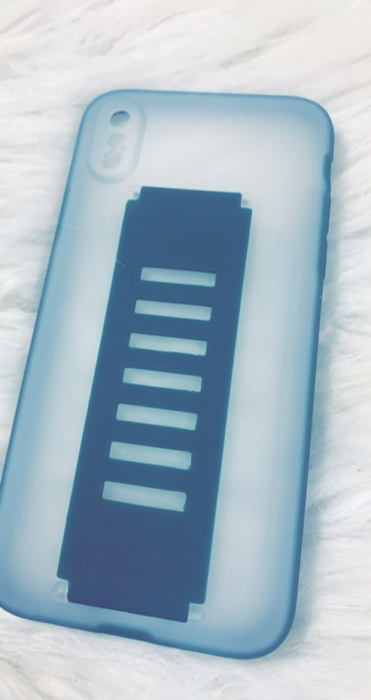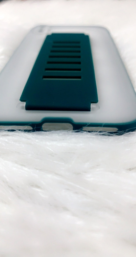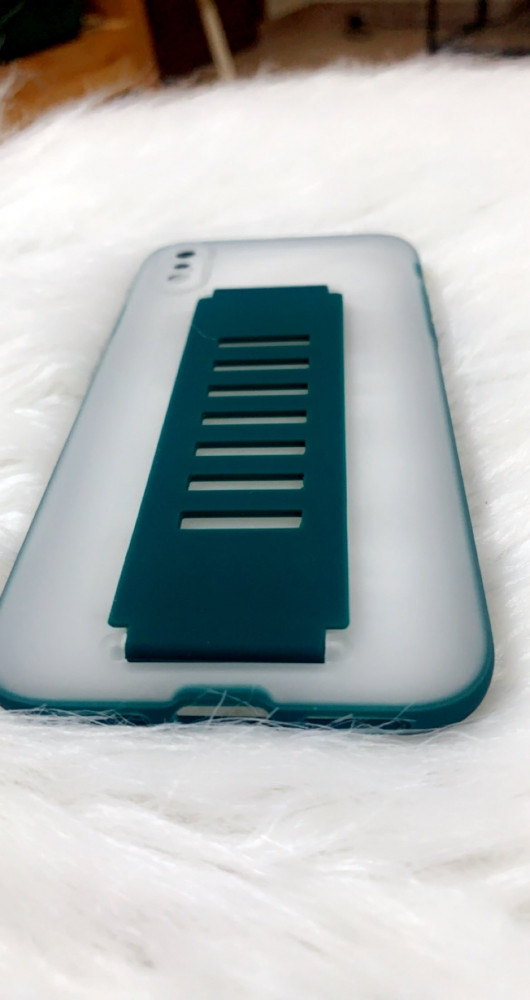 غلاف ايفون اكس اس شفاف, بحواف باللون الأخضر الداكن مع مسكه
