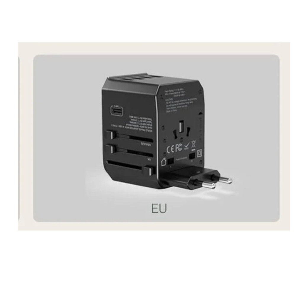 محول سفر عالمي مع منفذين تايب سي فائقة السرعة ومنفذين يو اس بي نوع سي ومنفذ PD فائق السرعة بقوة 45 واط ومقبس طاقة في لجميع أنحاء العالم